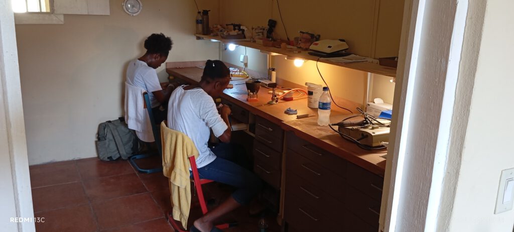 Vielen Dank auch für die Unterstützung an Kirsten Fruhnert und Ralf Thum , welche im Ausbildungsquartal 2024 und 2025 die Kosten für Übernachtung und Verpflegung eines Azubis für die Monate Juni – August in Halle an der Saale übernahmen. So war es möglich eine Ausbildung im Dentallabor Ralf Thum zu ermöglichen. Das Gelernte nimmt er nun mit nach Haiti, um es weiter zu üben.